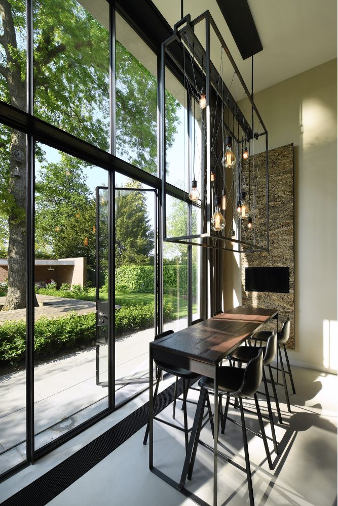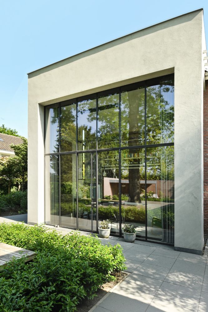 Een hoogte van zes meter vraagt om kracht – en die wordt geleverd door de massief stalen profielen van MHB. Dankzij de hoge stijfheid en structurele kwaliteit van dit staal is het mogelijk om zulke grote glasvlakken te realiseren, zonder concessies aan stabiliteit of veiligheid. Bovendien is er in het kozijn subtiel een uitzetraam geïntegreerd. Dit stalen raam bevindt zich op hoogte en is eenvoudig te bedienen, waardoor natuurlijke ventilatie mogelijk blijft – zelfs bij deze indrukwekkende afmetingen.