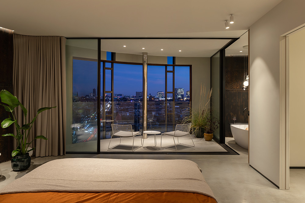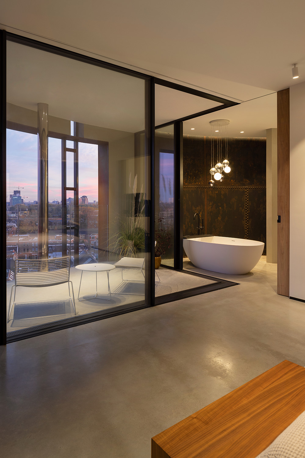 Juist vanwege bovenstaande elementen is er bij dit project gekozen voor deze slanke aluminium schuifpuien. De hoekopening in combinatie met het drempelloos Sky-Frame profielsysteem realiseert een enorme doorloop naar buiten. De grote glasoppervlakken zorgen ervoor dat het uitzicht op de Domtoren en het uitzicht op de stad gemaximaliseerd wordt. De corner opening van deze glazen hoekpui is gerealiseerd door naadloze glazen hoekverbindingen, waarbij de glazen panelen met uiterste precisie aan elkaar zijn bevestigd. Het resultaat is een indrukwekkende hoekopening die zorgt voor een ongehinderd uitzicht en een naadloze overgang tussen binnen en buiten.