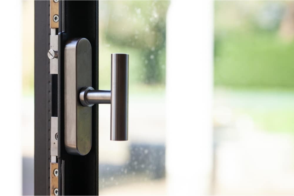 Aan de zijkant van het bijgebouw zijn openslaande stalen tuindeuren geplaatst met een sluitstijl van slechts 58 millimeter breed. Door deze minimale profilering ogen de deuren als vaste ramen, waardoor het lijnenspel ononderbroken blijft. Pas bij gebruik blijkt dat het hier gaat om een volledig functionele toegang. Deze subtiele techniek is kenmerkend voor het MHB-systeem, waarin esthetiek en prestaties hand in hand gaan.