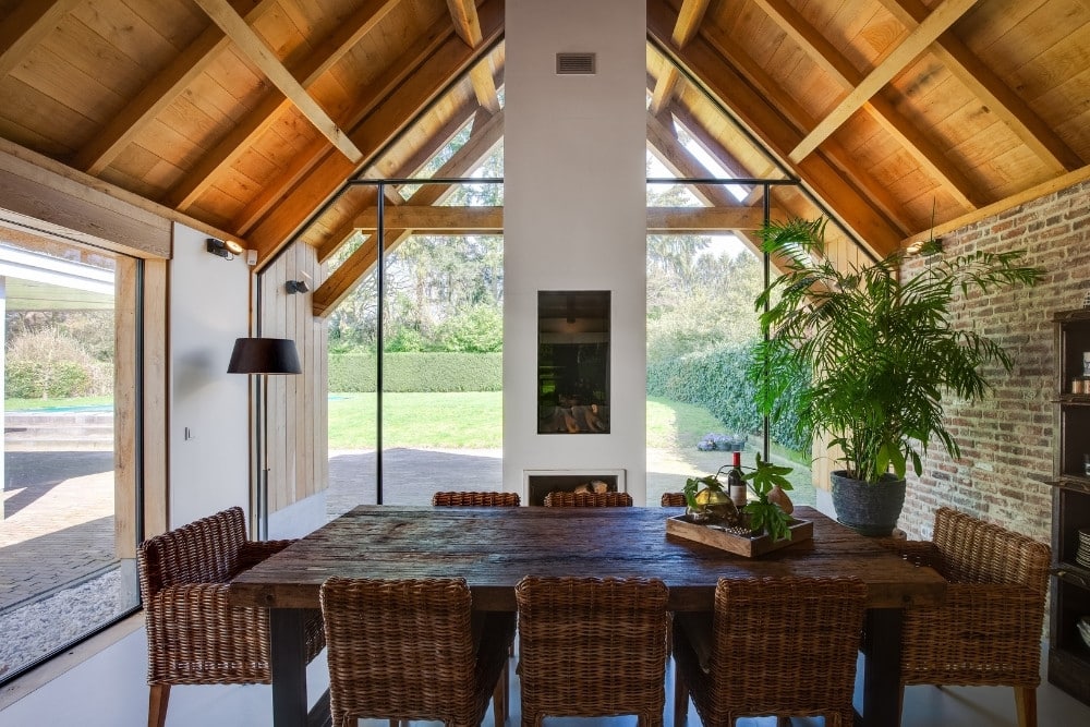 Het ontwerp maakt gebruik van natuurlijke materialen die met aandacht zijn toegepast. Hout, baksteen en staal zijn hier geen tegenpolen, maar werken samen in balans. De stalen ramen en deuren brengen structuur en licht in het interieur, zonder af te doen aan het landelijke karakter. De keuze voor massief staal onderstreept het vakmanschap dat in dit project is gestoken. Dit vakmanschap is duurzaam, slank en met een ongeëvenaarde precisie in afwerking.