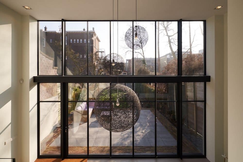 Rotterdam staat vol met karaktervolle herenhuizen, vaak gekenmerkt door hoge plafonds, symmetrie en royale gevelopeningen. In dit specifieke pand is die hoogte volledig benut met een gevelvullende oplossing in staal en glas. De volledige achtergevel is vernieuwd en uitgevoerd in een combinatie van slanke profielen en grote glasvlakken, waardoor daglicht en zichtlijnen maximaal tot hun recht komen.