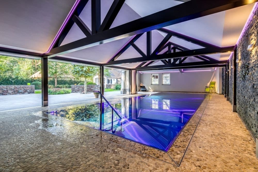 In Someren is bij deze exclusieve woning een bijzonder samenspel gerealiseerd tussen techniek, design en flexibiliteit. Zowel bij de garage als het zwembad zijn stalen ramen en kozijnen geplaatst die volledig in de vloer kunnen verdwijnen. Hierdoor ontstaat maximale openheid en worden ruimtes multifunctioneel: de garage verandert moeiteloos in een showroom en het binnenzwembad krijgt de beleving van een buitenbad.