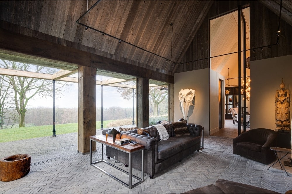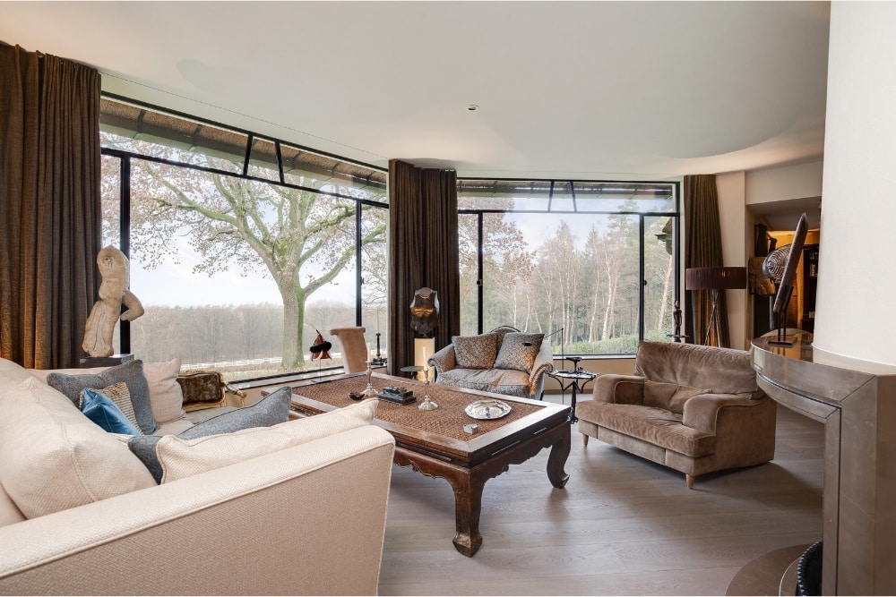 Aan de rand van de Utrechtse Heuvelrug is een oude landelijke villa volledig vernieuwd en getransformeerd tot een kunstig jachthuis. Het ontwerp van Wolterinck Laren ademt exclusiviteit en brengt Afrikaanse invloeden subtiel in het interieur. De ligging in dit unieke natuurgebied versterkt de sfeer: glooiende bossen en rijke herfstkleuren maken dit tot een plek die haast on-Nederlands aandoet.