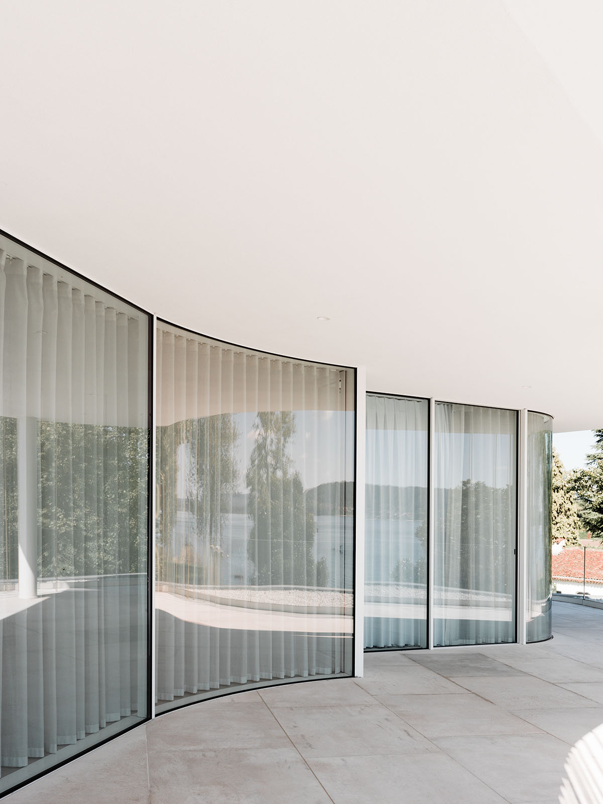 De gebogen glasfronten kunnen in verschillende radiussen en configuraties worden uitgevoerd, al dan niet gecombineerd met rechte delen. Hierdoor ontstaat een unieke vrijheid in ontwerp: van subtiel afgeronde gevels tot krachtige ronde composities. De geïntegreerde techniek, inclusief automatische aandrijvingen, zorgt ervoor dat de schuifdelen soepel en geruisloos bewegen, precies zoals men van Sky-Frame mag verwachten.